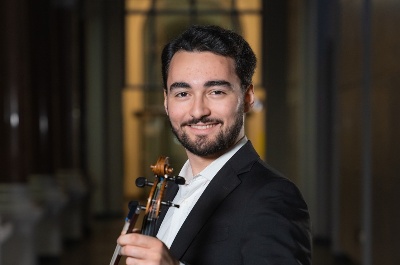 In der Blauen Karawane können Besucherinnen und Besucher die Musik ganz aus der Nähe erleben – einige Sitzplätze befinden sich sogar mitten im Orchester. So entsteht ein Konzert, das vor allem für Kinder zu einem besonderen Erlebnis wird. Höhepunkte des Konzerts sind Mozarts "Sinfonia Concertante", gespielt von den beiden Solisten Salvatore Di Lorenzo (Foto, Violine) aus Sizilien und Álvaro Castelló (Bratsche) aus Spanien sowie die Uraufführung einer "Fantasie über Melodien aus dem Levant", geschrieben von dem Solisten und Komposition Solisten Salvatore Di Lorenzo selbst. Außerdem sind die farbenreiche Tschechische Suite von Antonin Dvorák sowie Stücke von Manuel de Falla und John Williams zu hören.In Kalender eintragen